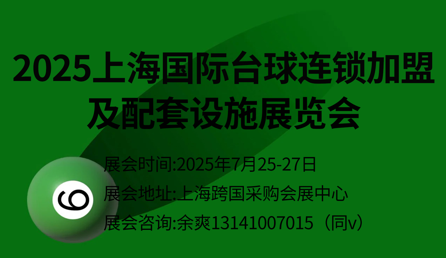 台球运动作为一项兼具竞技性与休闲性的体育项目,深受大众的喜爱与追捧。我国台球行业发展态势迅猛,市场规模持续扩大,参与人数不断增加,产业价值日益凸显。台球产业的发展不仅带动了相关体育用品制造、赛事运营、教育培训等上下游产业的协同发展,同时为地方经济增长、就业创造和文化繁荣做出了重要贡献。 为响应“发展体育运动,增强人民体质”的号召,进一步推动台球行业的健康、有序发展,加强行业交流与合作,“2025上海国际台球连锁加盟及配套设施展览会”将于2025年7月25日-27日在上海跨国采购会展中心举办。展会将汇聚国内外众多知名台球品牌、企业和专业人士,集中展示台球行业的最新产品、技术和发展成果,涵盖台球器材、场馆设施、赛事服务、培训教学等多个领域。同时,展会期间还将举办一系列丰富多彩的活动,包括行业论坛、连锁招商加盟、技术研讨会、新品发布会、台球赛事等,为参展商和观众提供一个深入交流、合作共赢的平台。 我们诚挚邀请贵单位参加2025上海国际台球连锁加盟及配套设施展览会,共同把握台球产业发展的新机遇,为推动全民运动的深入发展贡献力量。