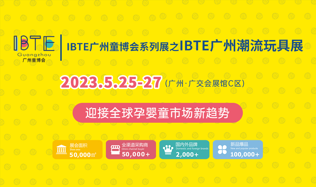 IBTE广州潮玩展将于5月25-27日在广州•广交会展馆C区盛大开幕。展会规模50000平方米,预计国内外品牌2000+,专业观众50000+。展会同期举办“潮玩IP授权高峰论坛” 、“中国婴童产品电商千人大会暨潮流玩具选品大会”、【潮玩周】展台打卡等系列活动,链接全球IP,助力中国潮玩开拓创新,抢占千亿商机。