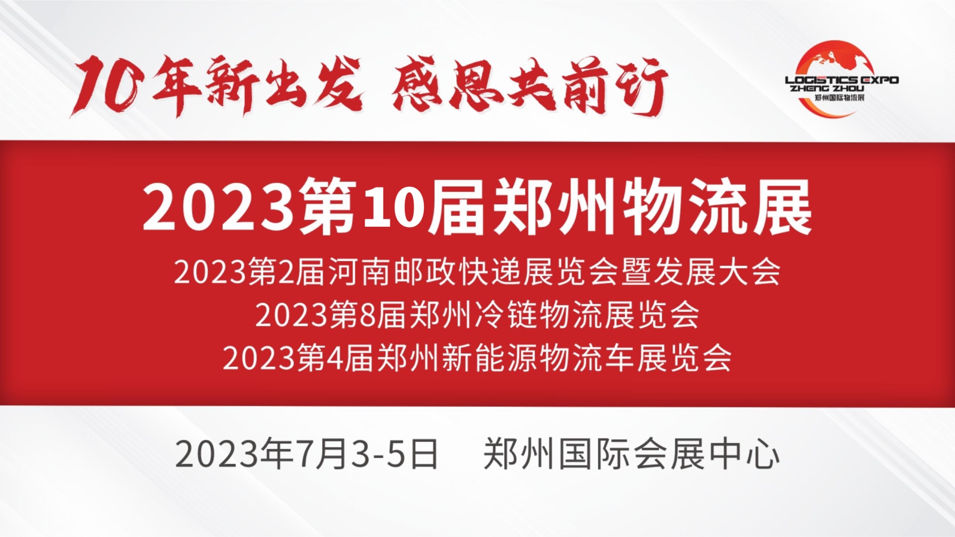 郑州物流展创办于2014年,迄今已连续成功举办9届。2023第十届深郑州物流展览会将于2023年7月3日-5日在郑州国际会展中心举办。同期举办第2届河南邮政快递展览会暨发展⼤会、第8届郑州冷链物流展览会、第4届郑州新能源物流⻋展览会。作为中西部专业的物流⾏业盛会,郑州物流展立足中西部市场,聚焦仓、配、运,打造⼀站式商贸平台。历经10年沉淀,展会不断升级,聚焦物流服务、物流技术与装备、邮政快递、冷链、多式联运、新能源物流车等各环节服务、产品及解决⽅案,围绕新业态、新模式、新技术、新⽅案等在主题展区、专场对接会、议论坛等方面全面升级,为中部物流行业搭建集"产品销售、市场开发、品牌推广、渠道拓展、人脉建立"为一体的中部物流行业盛会。