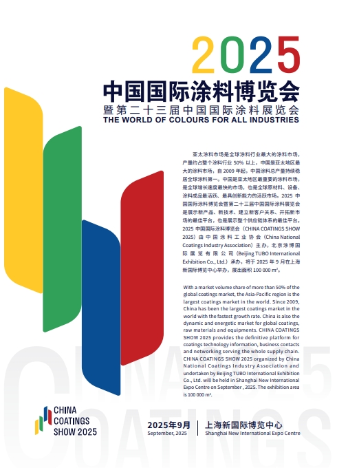 第二十三届中国国际涂料展览会(CHINA COATINGS SHOW 2025)将在上海新国际博览中心N1(原材料)、N2(涂料)、N3(设备)馆隆重召开。