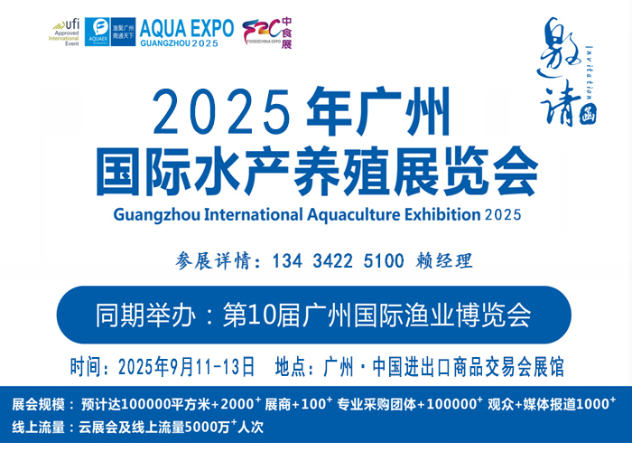 2025广州国际水产养殖产业展览会 同期举办:2025第11届广州国际渔业博览会 举办时间:2025年9月11-13日 举办地点:广州·中国进出口商品交易会展馆