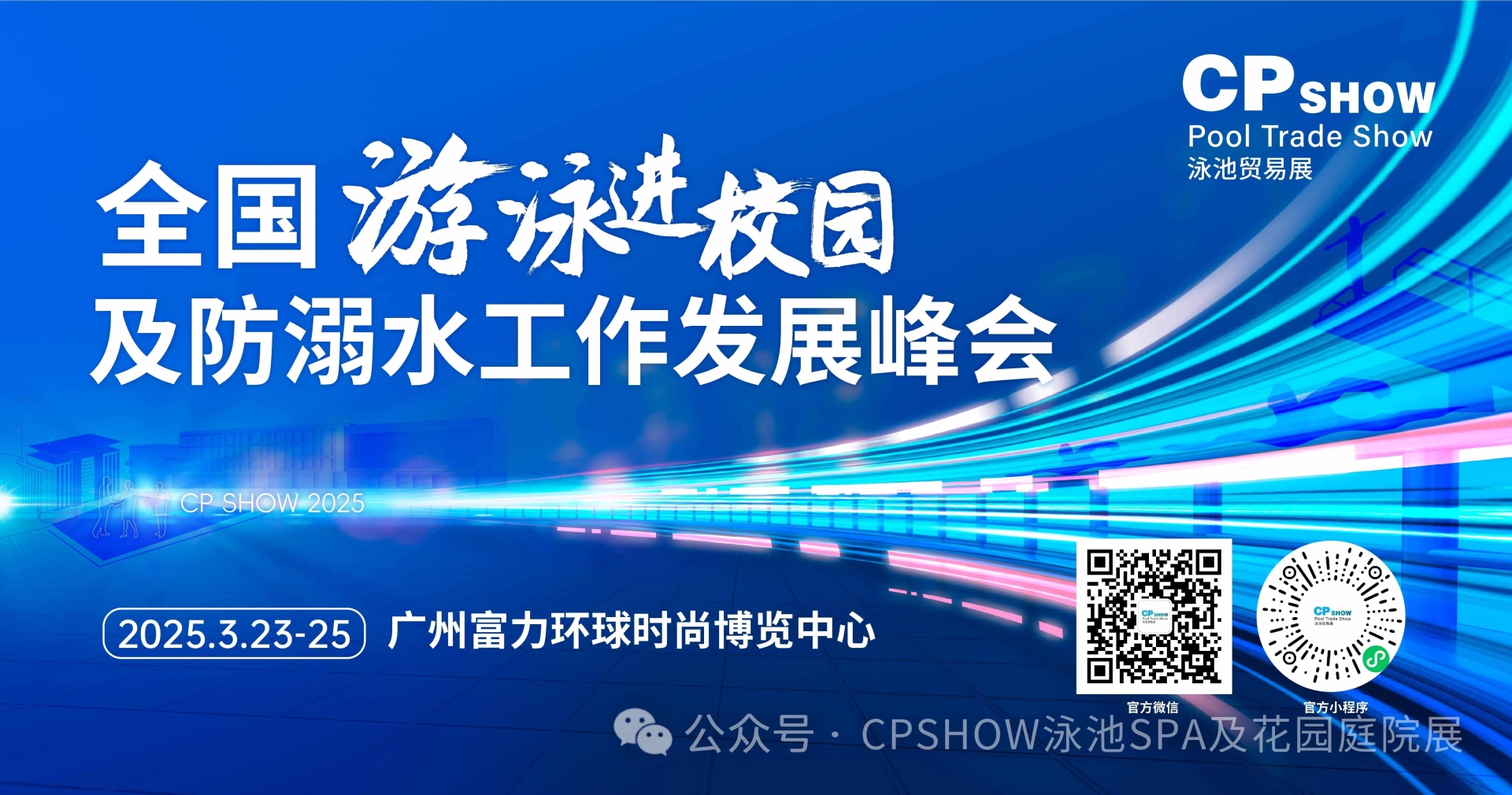 2025年3月23日,CPSHOW广州泳池展主会场 峰会将于2025年3月23日,在CPSHOW广州泳池展主会场盛大开幕,预计参会人数将达到1000人。这不仅仅是一场规模空前的盛会,更是一次行业内的深度交流与融合。在这里,每一位参与者都将有机会与游泳行业顶尖人物面对面交流,共同探索游泳进校园及防溺水工作的无限可能。