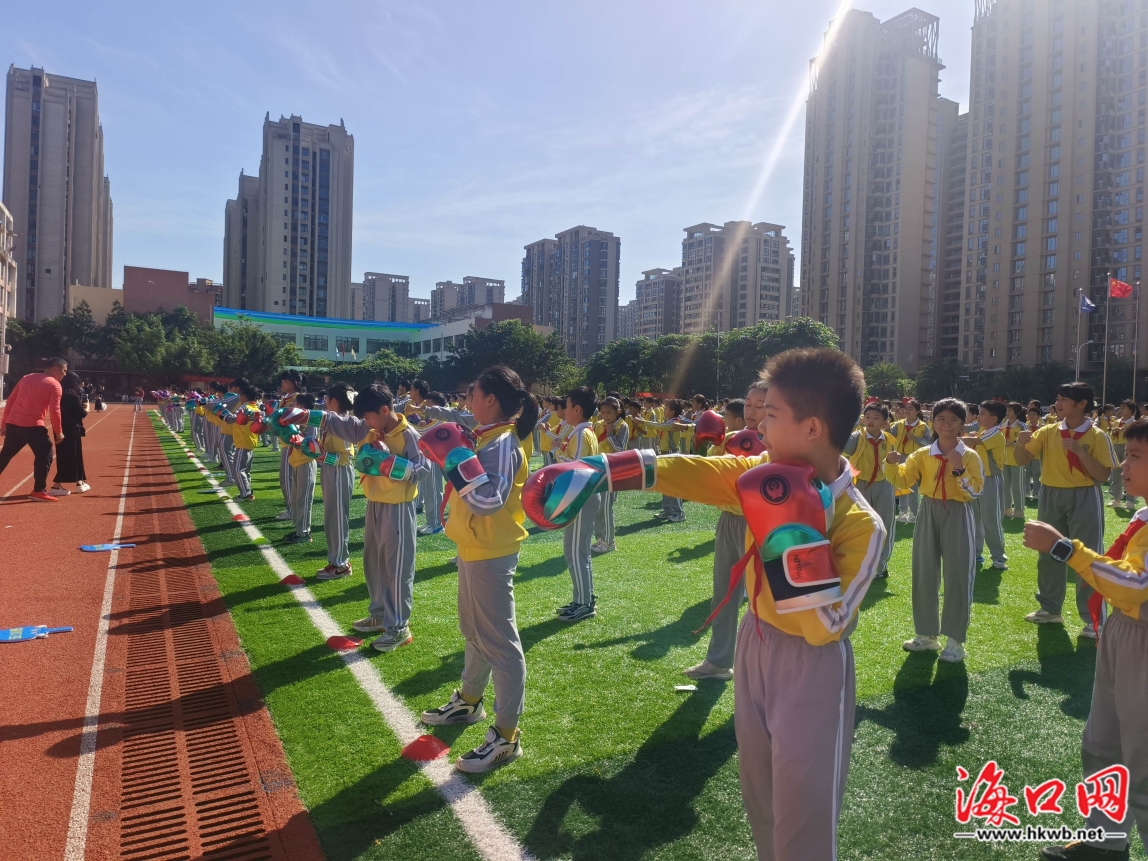 11月28日,2024(中国·海口)WBO/WBC职业拳王争霸赛进校园活动在海口市五源河学校举行,千名学生在职业拳手的带领下,进行沉浸式拳击课程体验。活动旨在宣传、普及拳击运动,丰富学生校园生活,增强学生体质,培养新时代好少年。